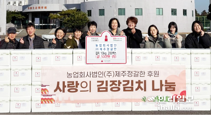 농업회사법인 (주)제주정갈한(대표 변우미)은 지난 14일 서귀포시 표선면(면장 문철환)에 김치 200상자(1500만원 상당)를 제주사회복지공동모금회를 통해 기탁했다.