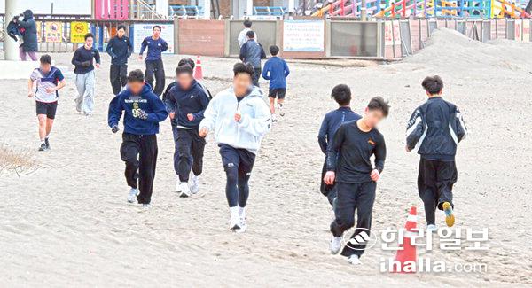 [한라일보] 제주서 구슬땀20일 제주시 이호해수욕장에서 제주를 찾은 전지훈련단 선수들이 훈련을 하고 있다. 강희만기자