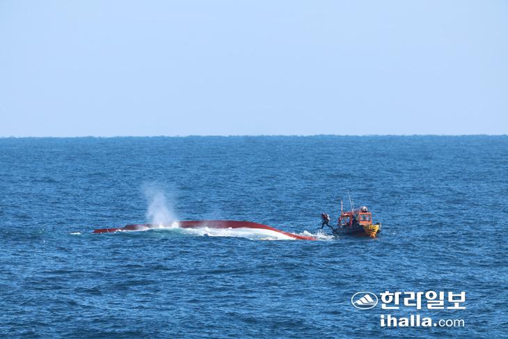 2025 제주보도 사진전. 사진은 제주해경이 서귀포 해상에서 전복된 서귀포 선적 갈치잡이배 2066재성호 실종자를 찾기 위한 수색 작업을 벌이고 있는 모습을 담았다.