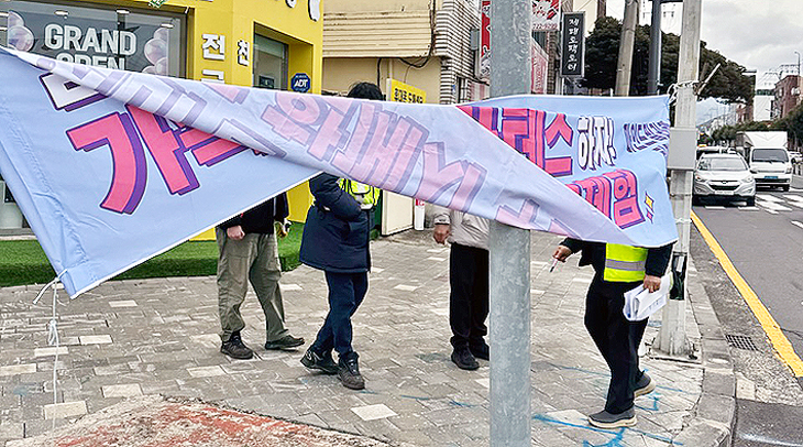 제주시 용담1동(동장 강재선)은 지난 20일 지역 내 주요 도로변을 순찰해 도시 경관을 저해하는 불법광고물 정비를 실시했다.