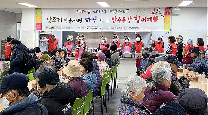 MG산남부녀회(회장 원희순)는 21일 서귀포종합사회복지관 경로식당에서 어르신들을 위한 급식 봉사활동을 진행했다.