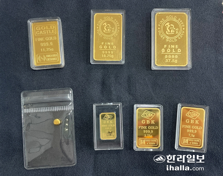 사진의 왼쪽 가장 아래에 있는 1g짜리 콩알금 등 소량 금 수요가 최근 늘고 있다. 양유리기자