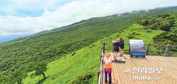 | 사라오름 정상, 멀리 서귀포 일대를 조망하기에 알맞다. 김찬수 |