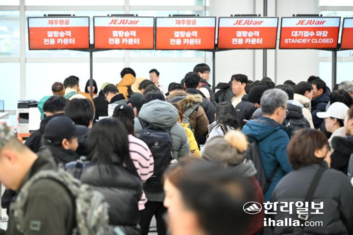 이날 제주공항에서 만난 유모(50대)·김모(20대)씨는 “내일 회사로 복귀해야 하는데 항공편이 결항돼서 아침 7시부터 공항에 도착해 항공사의 연락을 기다리고 있다”며 “앞서 예약한 항공편이 취소돼서 새로 예약을 했는데 그것마저 결항돼 답답한 심정”이라고 토로했다.