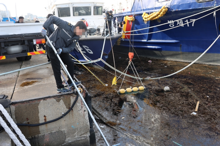 해경, 제주항 인근서 괭생이모자반 5t 수거