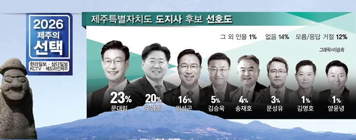 문대림 23% 오영훈 20% 위성곤 16% 김승욱 5% 순