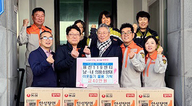 서귀포시 표선의용소방대(남성대장 함승범·여성대장 이명학)와 제주동부소방서 표선119센터(센터장 이창훈)는 지난 5일 어려운 이웃을 위해 40만원 상당의 라면을 표선면(면장 문철환)에 기탁했다.