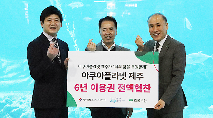 아쿠아플라넷 제주(관장 김시훈)는 초록우산 제주지역본부(본부장 김희석)에 '아쿠아플라넷 제주 6년 연간이용권'을 전달했다. 이용권은 지난해 KBS 다큐멘터리 '동행' 출연한 아동에게 전달될 예정이다.
