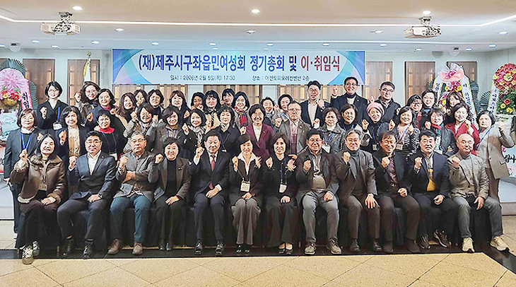 [한라일보] (재)제주시구좌읍민여성회(신임회장 김순여)는 지난 5일 제주시 오라동 아젠토피오레에서 회원, 내빈 등 100여 명이 참석한 가운데 회장 이·취임식을 개최했다.