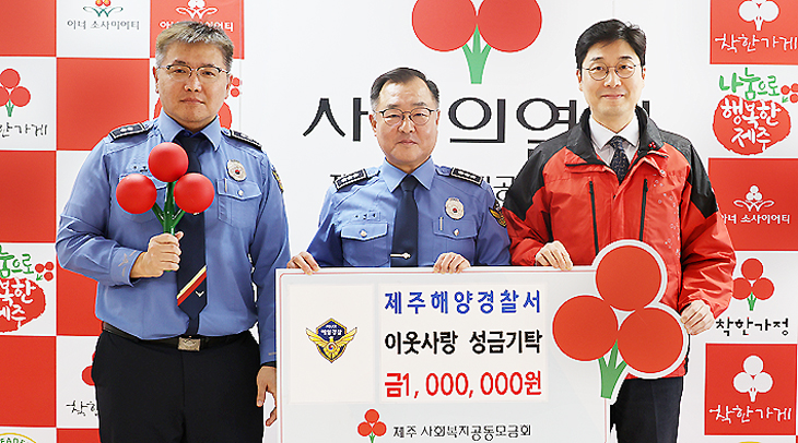 제주해양경찰서(서장 지국현)는 11일 설 명절을 맞아 제주 사회복지 공동모금회에 이웃사랑 성금 100만원을 기탁했다.