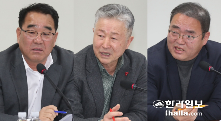 사진 왼쪽부터 제주도의회 농수축경제위원회 김승준, 양용만, 강봉직 의원. 도의회 제공