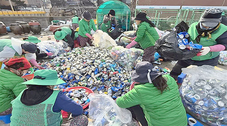 부녀회는 평소 버려지는 캔 등을 재활용해 환경 보호에 앞장서고, 재활용품을 판매해 얻은 수익금은 지역 내 어려운 이웃들에게 환원하고 있다.