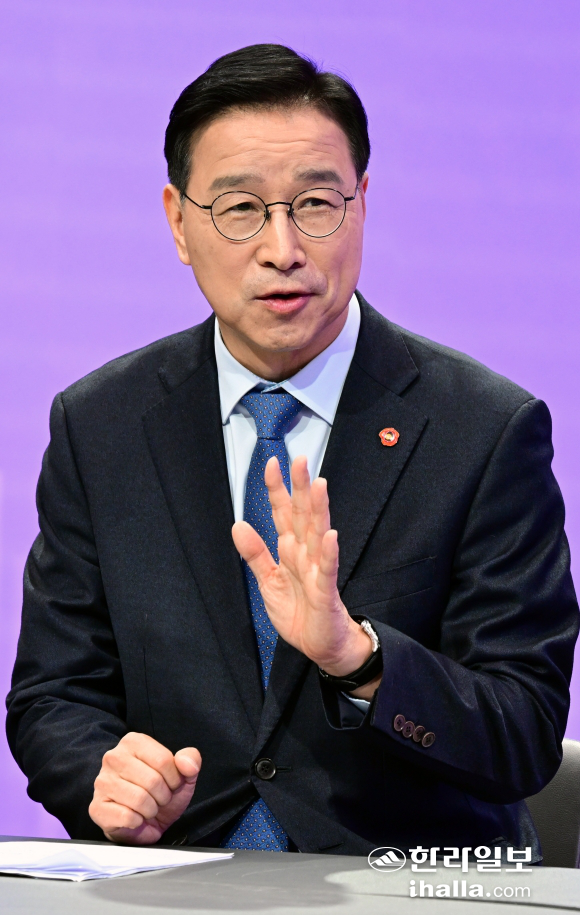 ▶제2공항에 대한 입장은=최대한 빨리 논란을 종식시키는 것이 중요하다. (제2)공항이 필요하다고 생각하지만, 그렇다고 해서 안전·환경 문제를 등한시 할 수 없다. 안전·환경 문제를 면밀하게 검토한 환경영향평가서가 제출되길 바란다. 그런 객관적 바탕 위에서 도민들이 함께 (제2공항 추진 여부를) 결정해야 한고 생각한다. 결정 방법은 주민투표나 공론조사 등 여러 가지가 고려될 수 있다. 정치인 누구 혼자 (제2공항 추진 여부를) 결정할 수 있는 문제는 아니다.