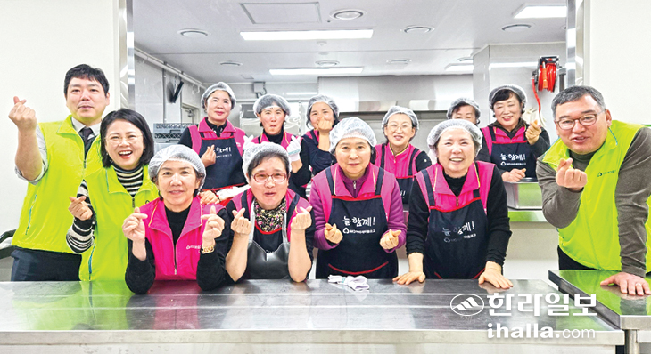 아라새마을금고 좀도리부녀봉사회(회장 양화순)는 지난 24일 아라종합사회복지관에서 어르신 150여 명에게 무료급식 봉사를 진행했다.