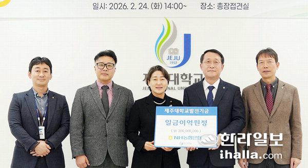 [한라일보] NH농협은행(제주영업본부장 고은정)은 지난 24일 제주대학교(총장 김일환)를 방문해 발전기금 2억원을 전달했다.