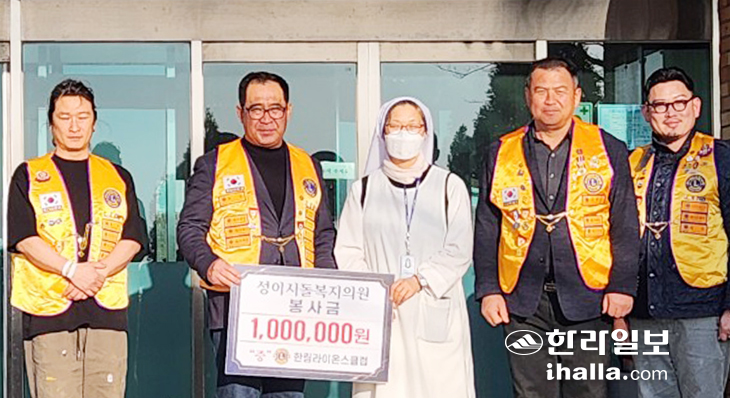 국제라이온스협회 354-G(제주)지구 한림라이온스클럽(회장 하종현)은 한림읍 금악리에 위치한 호스피스병원 성이시돌복지의원에 방문하여 성금 100만원을 전달했다.