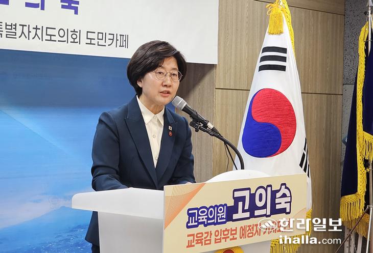 [한라일보] 오는 6월 3일 치러지는 제9회 전국동시지방선거 제주특별자치도교육감 선거에 출마 선언한 고의숙 제주도의회 교육의원(제주시 중부)이 26일 "청렴이 무너지면 교육의 공정성과 미래도 함께 흔들린다"며 "무너진 청렴 제주교육을 1등급으로 다시 회복하겠다"고 공약했다.