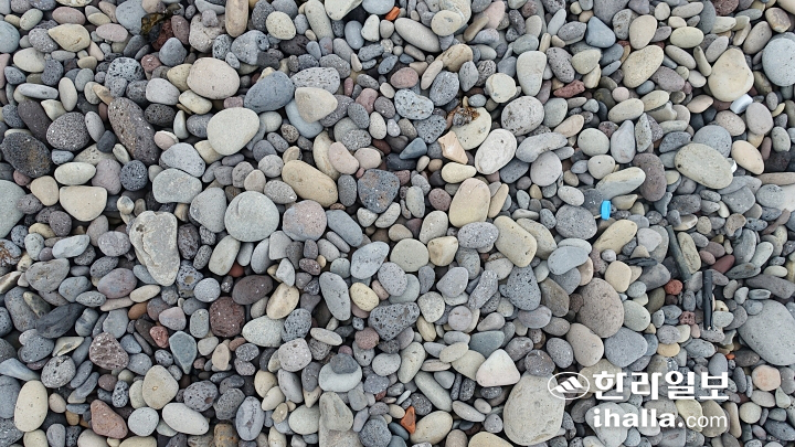 | 26일 오전 제주시 내도동의 알작지 해변의 몽돌. 크기와 색이 다양해 돌을 무단으로 반출하는 이들이 적지 않다. 양유리기자 |