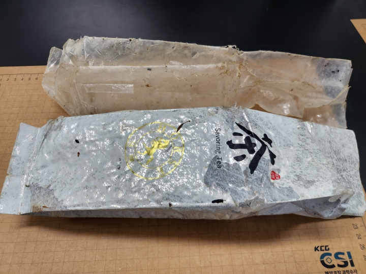 해당 물체는 은색 차(茶) 포장지 형태로 무게는 1㎏이다. 지난해 제주 해안에서 잇따라 발견된 포장 형태와 유사한 형태다.