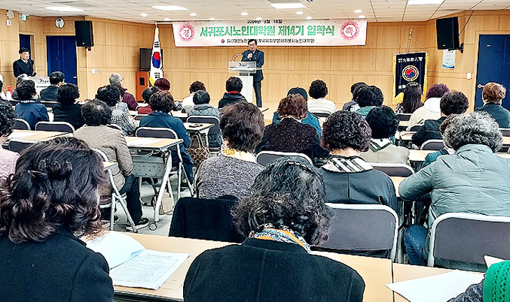 (사)대한노인회 서귀포시지회(지회장 한성율)는 지난 16일 서귀포시 노인대학원(원장 오순명) 강당에서 제14기 입학생 70여명이 참석한 가운데 입학식을 개최했다.