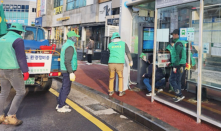 이날 회원들은 승차대를 고압 세척하고, 주변 환경을 정비해 깨끗한 대중교통 이용 환경 조성에 힘썼다.