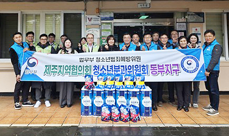 법무부 청소년범죄예방위원 제주지역협의회 청소년분과위원회 동부지구(회장 강종호)는 지난 18일 이대성 검사를 비롯한 제주지방검찰청 임직원과 범방위 위원 등 10여 명이 참여한 가운데 장애인생활시설 아가의 집을 방문했다. 이날 시설을 청소하고 30만원 상당의 생필품을 전달했다.