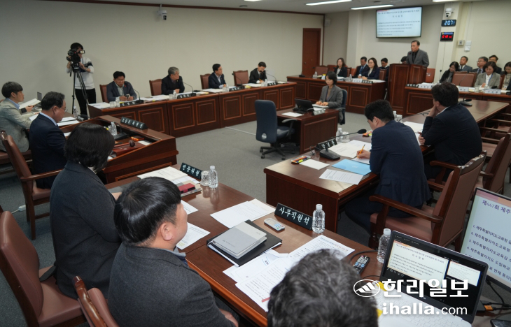 | 제주특별자치도의회 교육위원회가 20일 제447회 임시회 교육위 1차 회의를 열고 있다. 제주도의회 제공 |