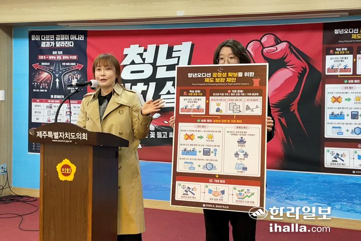 [한라일보] 6·3 지방선거를 앞두고 국민의힘이 비례대표 후보를 선출하기 위해 실시한 ‘청년 공개오디션’에 대해 당 내부에서 비판 목소리가 나왔다.