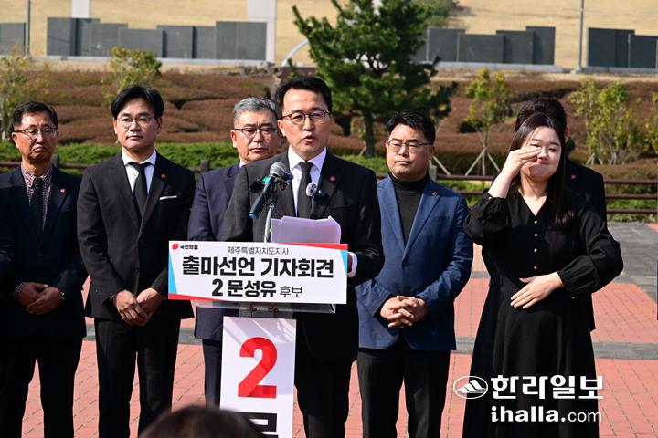 [한라일보] 오는 6월 치러지는 제9회 전국동시지방선거에 국민의힘 제주도지사 후보로 단수공천된 문성유 전 기획재정부 기획조정실장이 26일 출마를 공식 선언했다.