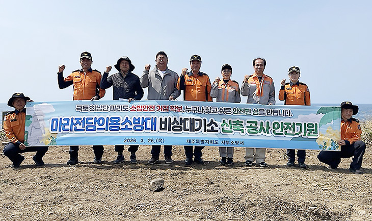 제주서부소방서(서장 고행수)는 26일 국토 최남단 마라도에서 '마라전담의용소방대 비상대기소 신축공사'의 본격적인 시작을 알리는 안전기원제를 개최했다.