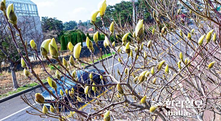 제주의 봄을 알리는 목련. 한라일보DB