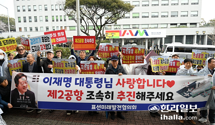 [한라일보] 이재명 대통령이 제주에서 타운홀 미팅을 개최한 가운데 제주지역 최대 현안인 ‘제주제2공항’ 찬반단체가 각각 피켓팅과 기자회견을 열며 팽팽하게 맞섰다. 일부 보수단체도 집회를 열면서 현장은 각종 구호와 고성이 뒤엉켜 긴장감이 맴돌았다.