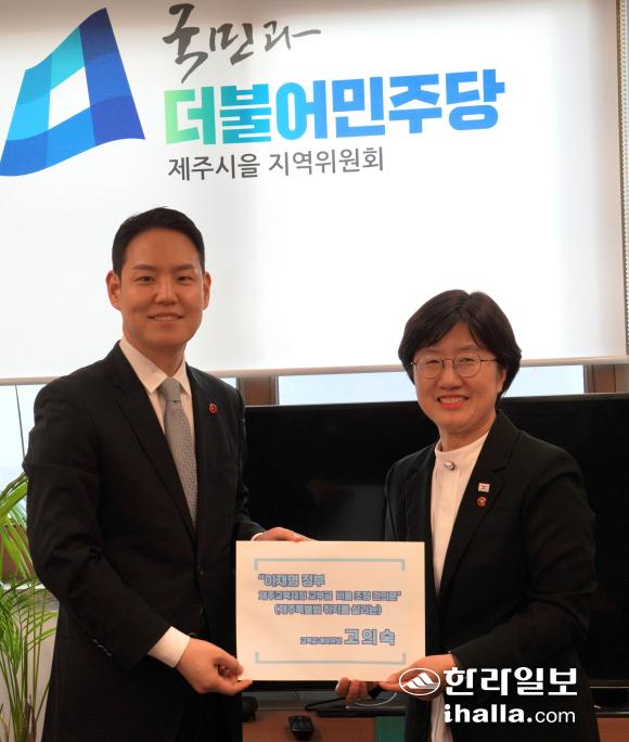 [한라일보] 6·3 지방선거 제주도교육감 선거에 출마한 고의숙 예비후보는 지난 28일 김한규 국회의원(더불어민주당, 제주시을)을 만나 제주 교육재정 확충을 위한 법 개정을 제안했다.