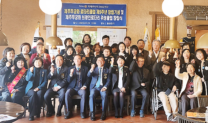 제주무궁화로타리클럽(회장 강정애)은 지난 29일 창립 9주년 기념식과 함께 제주무궁화브레인로타리위성클럽 창립식을 진행했다.