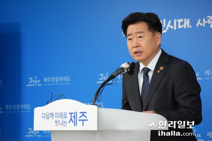 오영훈 제주도지사가 31일 제주도청 기자실에서 기자회견을 열고 있다. 제주도 제공