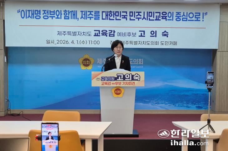 [한라일보] 6·3 지방선거 제주특별자치도교육감 선거에 출마한 고의숙(전 교육의원) 예비후보는 1일 "이재명 정부와 함께 '민주시민교육 선도학교'를 운영하겠다"고 공약했다.