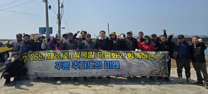 추자면(면장 박태근)과 주민자치위원회(위원장 이강구)는 지난 1일 제81회 식목일을 기념해 제주특별자치도에서 2035년 탄소중립 실현을 목표로 실천 중인 '1도민 1그루 나무심기 초록 릴레이'행사에 동참했다. 이번 행사는 추자도의 대표 랜드마크가 될 추자올레 인도교사업 현장 내 조성 중인 공원에서 이뤄졌고, 참가자들은 제주에서 자생하는 멸종위기야생 생물Ⅱ급 노란 무궁화(황근) 200그루를 식재했다.