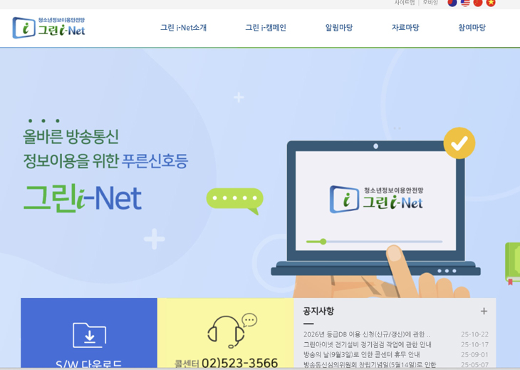 해당 누리집은 자녀의 올바른 인터넷 사용 습관을 기를 수 있도록 돕는 '푸른 신호등'의 역할을 한다. 주요 서비스로는 유해 정보 차단 소프트웨어 무료 보급, 자녀 지도를 위한 교육 콘텐츠 제공, 유해 정보 신고 센터 운영 등이 있다. 이를 통해 학부모와 학생 모두가 건강한 방송통신 이용 문화를 만들어가는 데 기여하고 있다. 그린아이넷에 대한 자세한 정보와 서비스 이용은 공식 홈페이지(청소년 정보이용 안전망 그린 i-Net) 를 통해 확인할 수 있다.