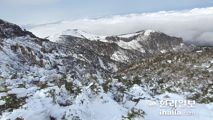 한라산 정상에 이르는 관음사 탐방로에서 바라본 장구목. 사진 김찬수