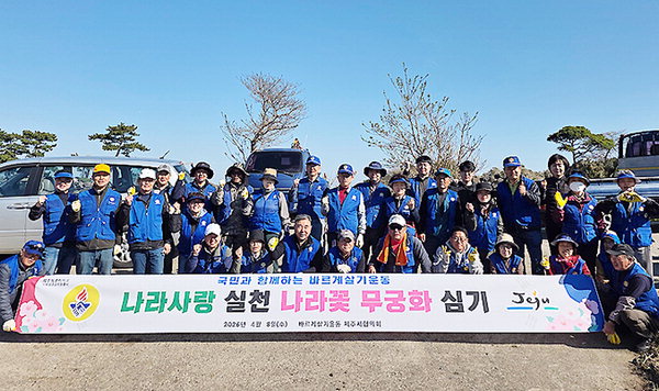 바르게살기운동 제주시협의회(회장 강대규)·조천읍위원회(위원장 조성환)는 8일 제주시 조천읍 우회 도로변 일대에서 나라사랑 무궁화 심기 활동을 전개했다.