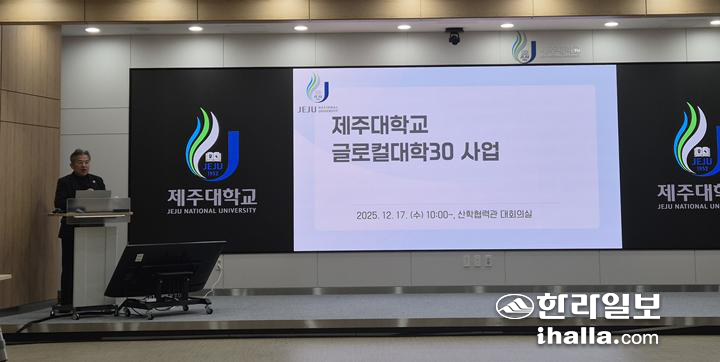 | 지난 12월 17일 제주대 산학협력관 1층 대회의실에서 제주대 글로컬대학30 추진 계획이 발표되고 있다. 한라일보 DB |