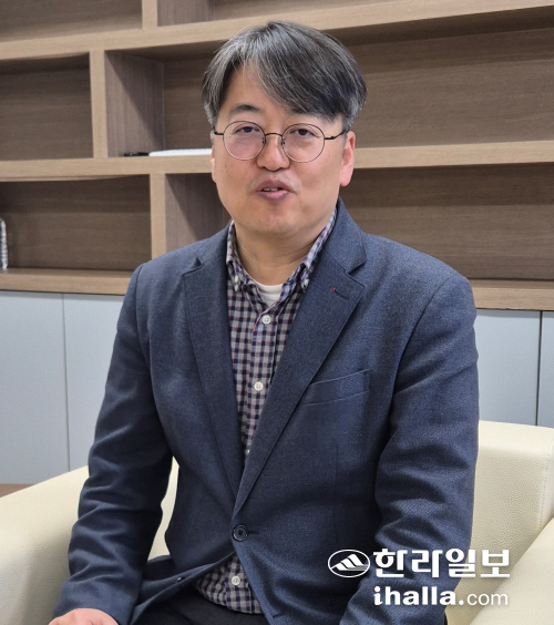 | 제주대 글로컬대학사업단장인 강주영 기획처장이 지난 7일 기획처장실에서 본보와 인터뷰하고 있다. 김지은기자 |