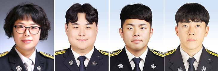 사진 왼쪽부터 강양옥 소방위, 오상완 소방장, 김경덕 소방장, 진민용 소방사