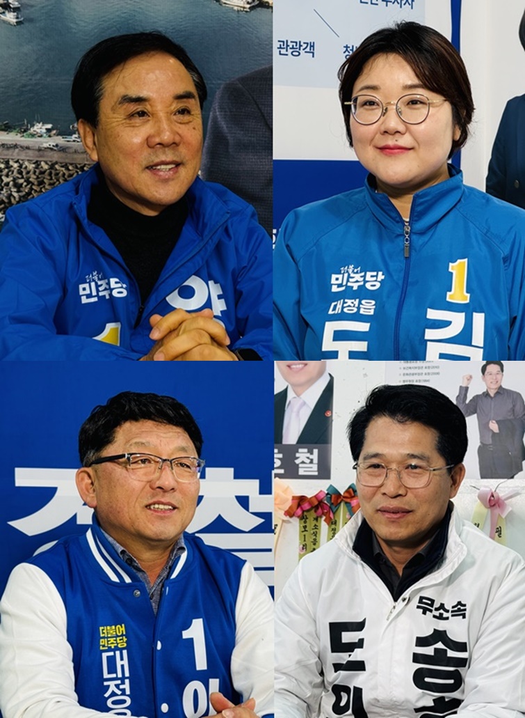 왼쪽위부터 더불어민주당 양병우 의원, 김나솔·이경철 예비후보, 무소속 송호철 예비후보.
