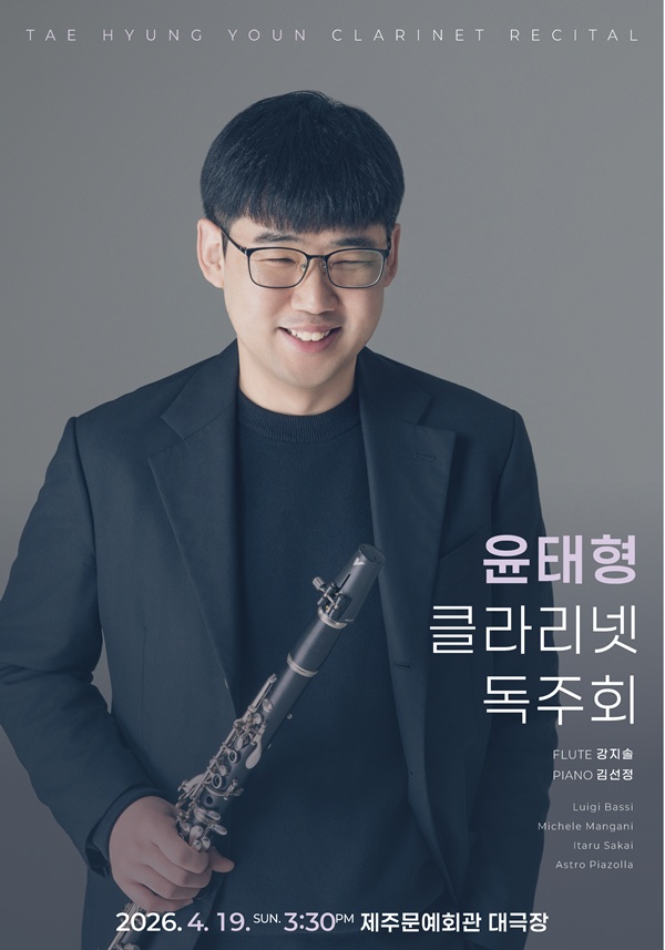 [한라일보] 클라리네티스트 윤태형이 아홉 번째 독주회를 펼친다. 오는 19일 오후 3시30분 제주도 문예회관 대극장에서다.