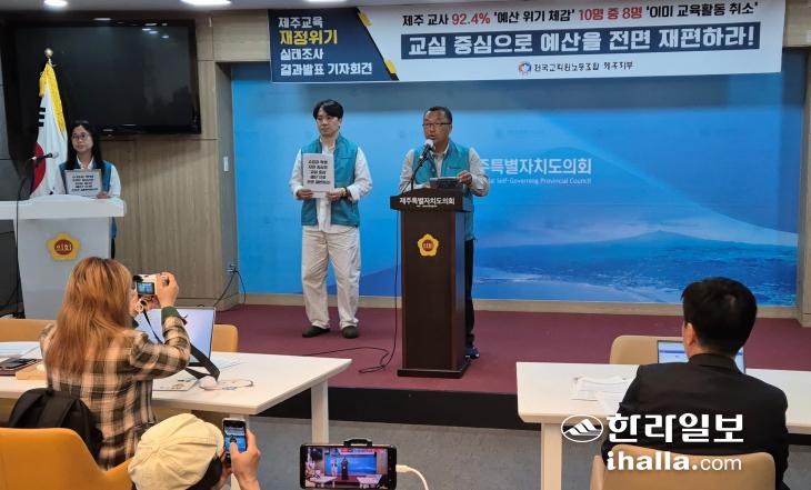 현경윤 전교조 제주지부장은 이날 기자회견에서 "이번 조사에서 교사들은 현재의 재정 위기를 단순한 예산 부족이 아니라 구조적 문제로 인식하고 있었다"며 "교육재정은 단순한 숫자의 문제가 아니다. 어디에, 어떤 기준으로 쓰이느냐의 문제이며, 그 선택의 결과는 결국 학생에게 닿는다"고 꼬집었다.