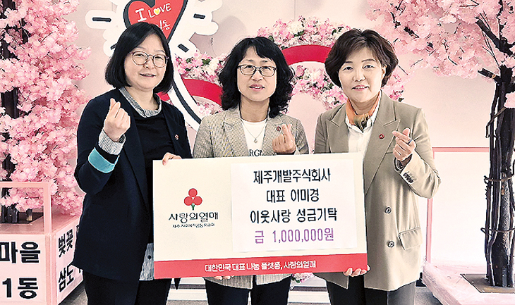 제주개발주식회사(대표 이미경)는 지난 16일 삼도1동(동장 송정심)을 방문해 지역에 거주하는 도움이 필요한 청소년을 위해 써달라며 성금 100만원을 기탁했다.