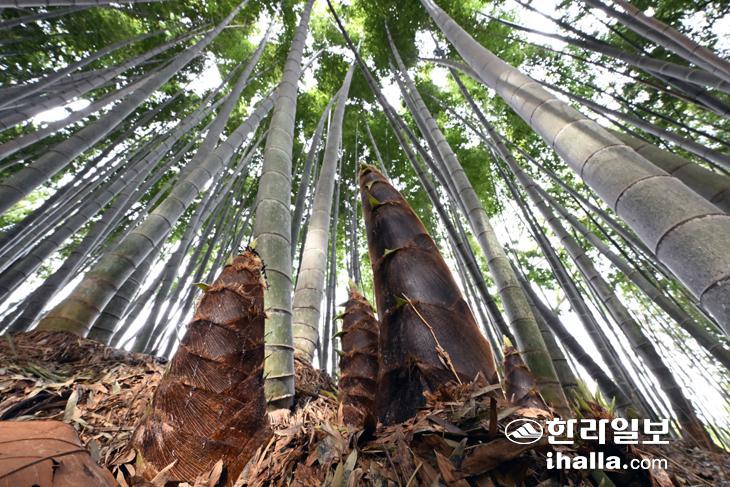 21일 제주시 한라수목원 내 대나무숲에서 죽순이 힘차게 솟아오르고 있다. 강희만 기자
