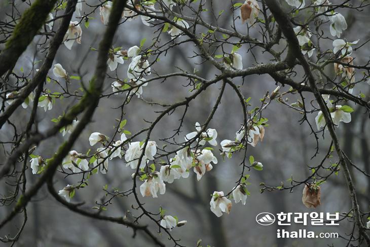 [한라일보] 제주 한라산의 최고령 목련이 꽃을 피웠다. 봄을 알리는 나무 중 하나로 꼽히는 목련은 우리나라에서 제주에서만 자생한다.