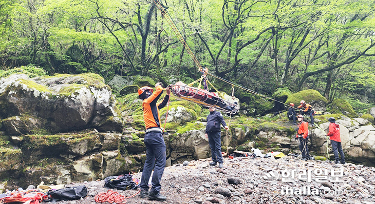 제주특별자치도 소방안전본부(본부장 박진수)는 지난 23~24일 한라산 천아계곡 일대에서 봄철 산악사고 대응 특별구조훈련을 실시했다. 훈련에는 특수구조대원 등 40여 명이 참여했으며, 드론과 119구조견, 산악구조장비를 활용한 실전형 훈련으로 진행됐다.